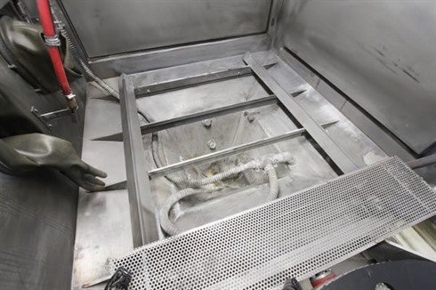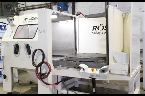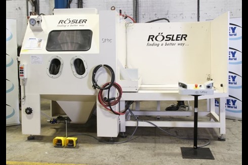 An immaculate Rosler VB-150H Semi-automatic Vapour Blast Machine commissioned but not used in production, this is a fine example of a wet blasting machine manufactured by the market leader in high-quality surface finishing equipment