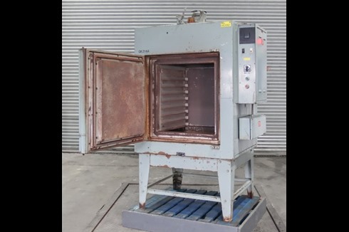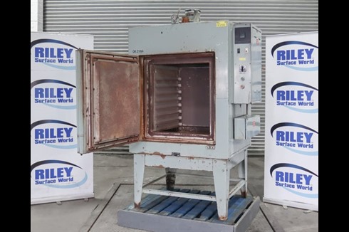 Barlow Whitney air circulated, heavy duty, electric, laboratory box oven suitable for a wide range of industrial heating and drying processes. Note damper controlled natural draft below and roof chamber exhaust.