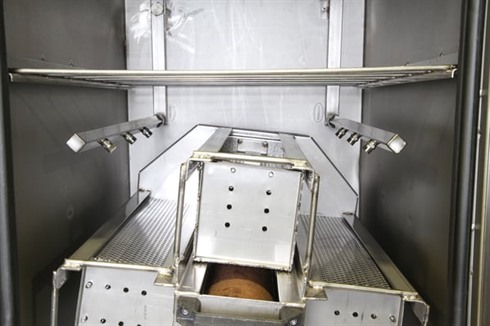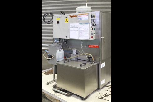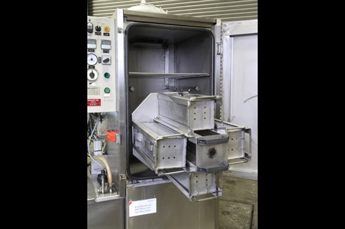 Compact washing machine with four separate baskets on a rotating turret, plus 4 spare baskets. Central Spray bar and two upper spray bars. Three programs available, mounted in a bund tray. Basket lid height adjustable to captivate smaller components if required. Wash up to 4 different types of components at once.