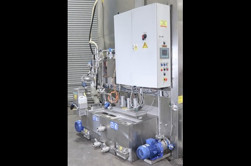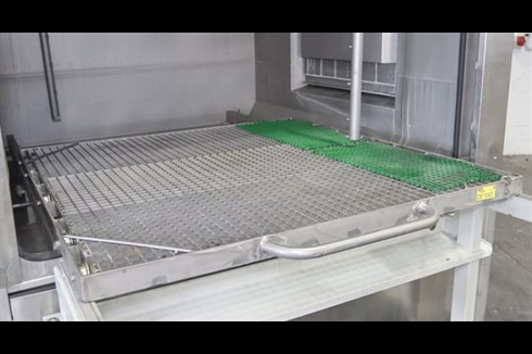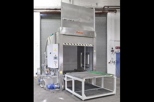 Turbex AC front loading, spray wash machine, designed as a heavy duty stainless steel spray cleaner with thermal and acoustic insulation, powered steam exhaust and powered vertical lifting door with safety features. Two stage, wash and rinse with added steam extraction.