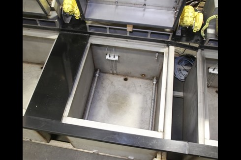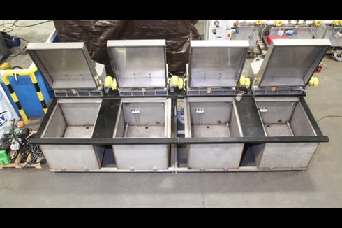 Manual cleaning line designed for aqueous cleaning processes on high value components. Manufactured by Gee & company in association with surface finishing engineering.