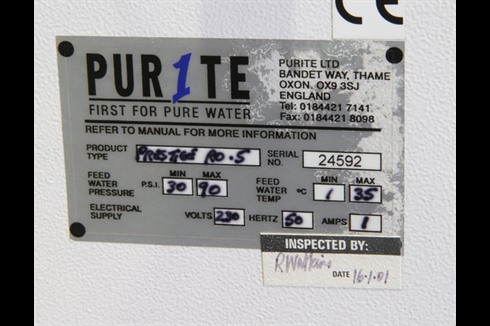 An immaculate, unused water treatment system including reverse osmosis, ion exchange and UV filtration system, to supply high quality water to laboratories and small capacity chemical plants which require high levels of purity and cleanliness.