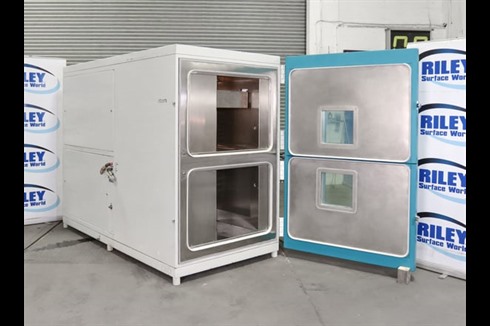A thermal shock twin chamber testing machine used for verifying the reliability of electronic materials, industrial or pharmaceutical products that are subject to temperature variations.