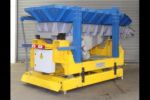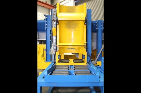 Charging system comprising of a 1 tonne capacity static drum tilter and a one 1 tonne capacity mobile vibratory furnace charging machine with onboard weighing load cells. Complete with one main control panel and one remote control panel.