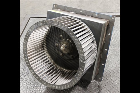 A Multivane plug fan with a 5.5kW (7.3Hp) motor mounted into a fixing plate. Direct drive, Ideal for air circulation within a ducting set up or other application where air circulation is required.