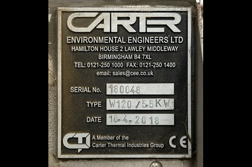 Carter Type W1200/5.5 KW environmental fume washer is a second hand NonFlam wet type dust extractor, constructed from stainless steel body with steel internal baffles.