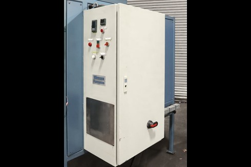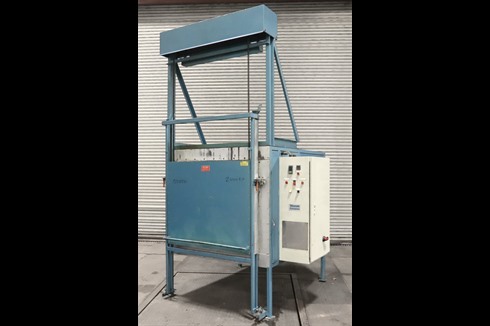 This steel lined, 670°C, roller hearth, industrial, air circulated oven has a large chamber size of 950mm x 1000mm x 950mm. Featuring a vertical lifting door, Eurotherm 3208 PID controller and Eurotherm 3216 over temperature controller.