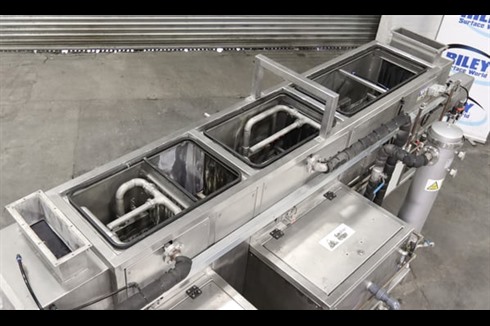 This Technowash AQF 300/4 is designed for industrial parts washing with unparalleled precision cleaning for all types of component parts, finished or semi-finished. The process stages are blow off, hot aqueous spray jet washing, blow off, hot jet rinse, blow off jets and air knife blow off.