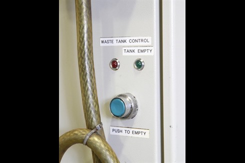 A front loading, aqueous-based industrial parts washing machine. Designed to accept mesh lidded containers filled with components for heated aqueous cleaning. Featuring a rotating drum with flood wash and vacuum drying.