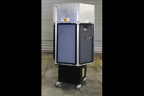 A BDS Solar panel testing cabinet designed to heat soak test solar panels over an extended period. Radium daylight bulbs are used to create daylight testing conditions needed for solar panel testing.