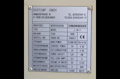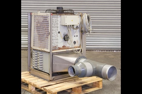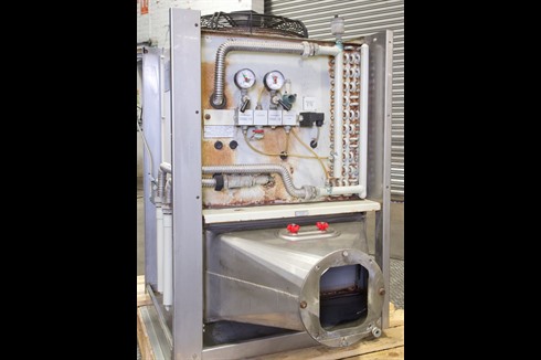 A used duotemp steam condenser, used to remove steam from the exhaust of large, enclosed hot degreasing plant and equipment