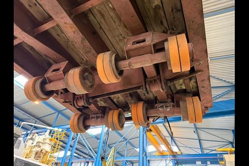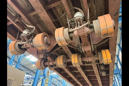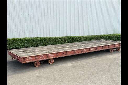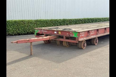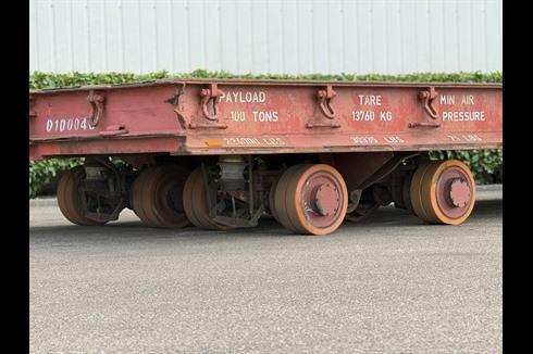 Plan heavy-duty trailer, 100-ton payload, pneumatically braked and single-steered.