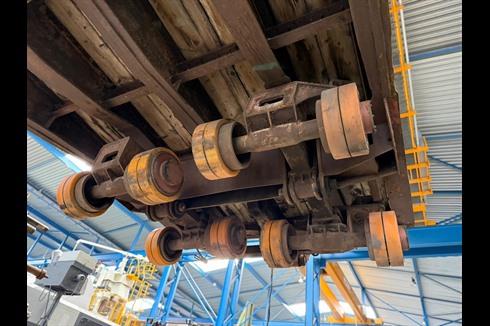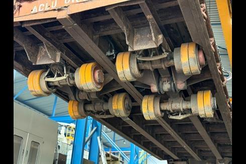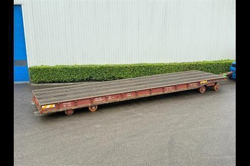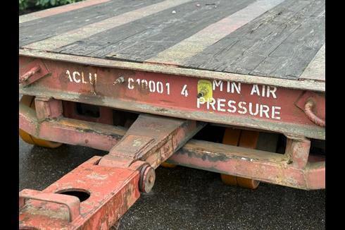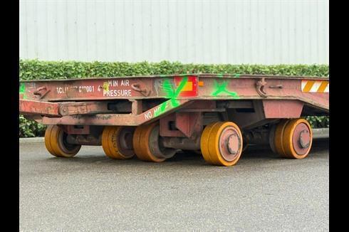 Plan heavy-duty trailer, 100-ton payload, pneumatically braked and single-steered.