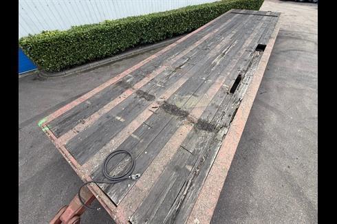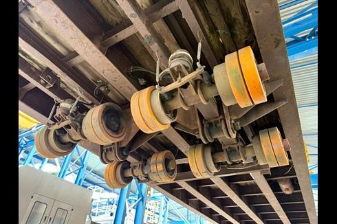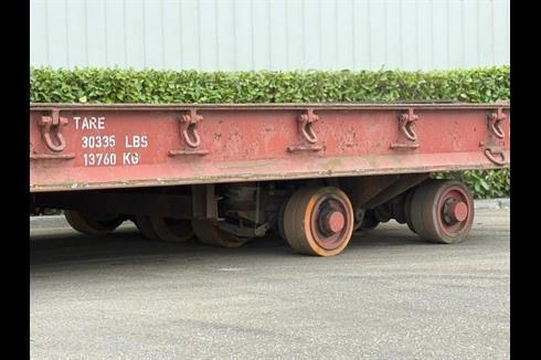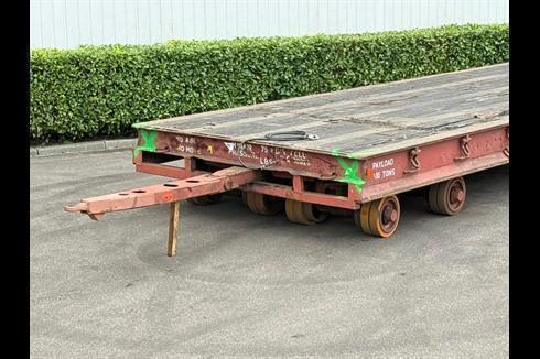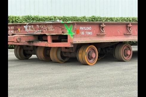 Plan heavy-duty trailer, 100-ton payload, pneumatically braked and single-steered.