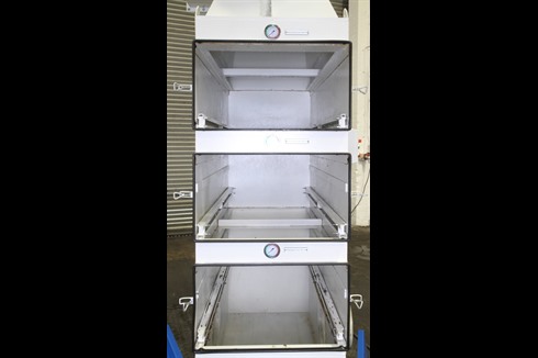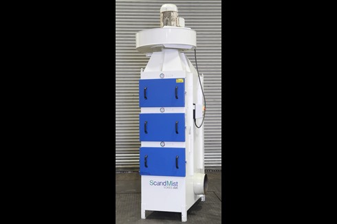 A heavy duty industrial air cleaner for effectively separating oil mists, oil fumes and emulsion mists during continuous operations. There are three filter stages with differential pressure gauges at each step. The first filter is washable, which reduces operating costs.