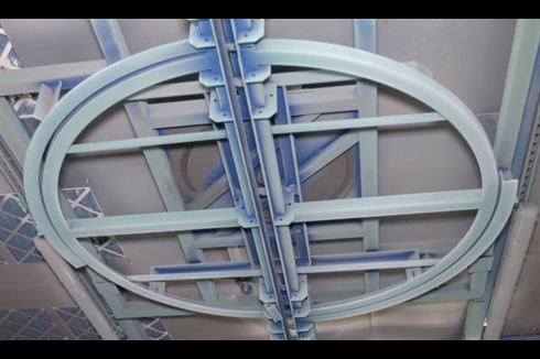 This PB metal finishing manual booth with conveyor & oven features a large wet back spray booth for manual powder/paint application complete with separate gas fired curing oven, both served by a manual overhead oval loop conveyor system.