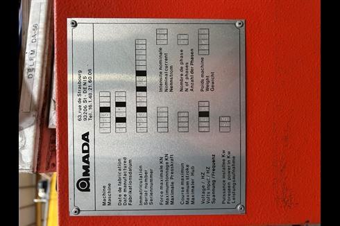 Distance Between Frame Uprights 1020mm, Throat Depth 400mm, Vertical Stroke 105mm,