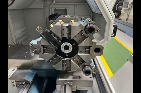 Distance between centers 1500mm. Swing over bed 520mm. Swing over cross slide 255mm. Swing over saddle wings 450mm. Travels X/Y 280/1555mm. Bed Width 340mm. Bed Height 336mm. Spindle nose A2-8″. Direct Drive. Rapid Traverse X/Z 10/10. Duplomatic Turret 8 Stations. Body positioning