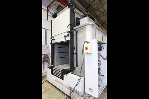 Caltherm oven/cooler with a programable cycle controller, powered opening doors, conveyor through feed and controlled heating and cooling cycles. 32.4kW of heating power ensures rapid heating of the oven chamber.