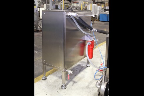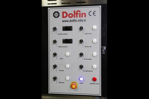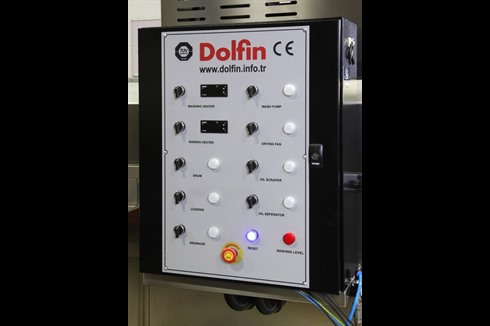 A rotary parts washer fitted with a continuous moving (variable speed) stainless steel drum that conveys the components through a single wash process and dry.