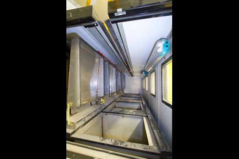 Enclosed manual cleaning line designed to carry the removal of masking lacquer on turbine blades using acetone but offering the possibility of conversion to other aqueous cleaning processes on high value components. Manufactured by Gee & company in association with surface finishing engineering.