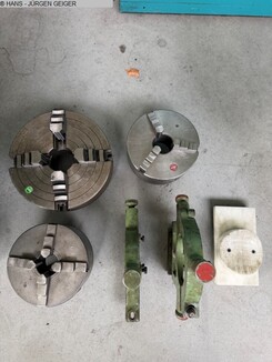 • Ausgestattet mit einem 3-Backenfutter RÖHM Ø 200, einem 3-Backenfutter AROWA Ø 200 sowie einem 4-Backenfutter LAMBERTINI Ø 300.