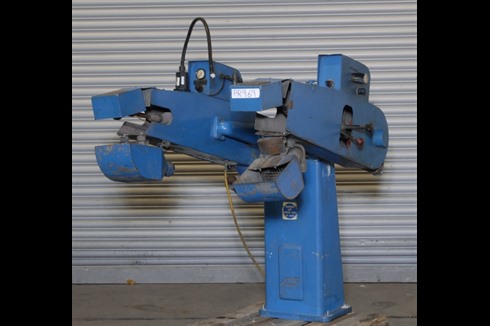 Heavy duty space saving twin belt linishing machine, complete with forward facing adjustable angle arms with guarding and adaptable idling contact wheels.