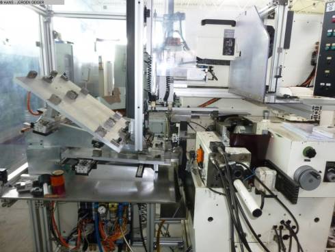 Die Fertigteile werden aus der Hauptspindel ausgestoßen und mit dem Greifer ebenfalls wieder zurück in die (Fertigteile-) Kasette verbracht. Der gesamte Ablauf wird elektrisch überwacht u. kontrolliert.