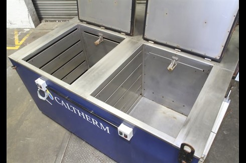 A Caltherm double chamber well drying oven with a total of 13.8kW of heating capacity, 3kW fan motor and two 840 litre drying chambers. Featuring independent, pneumatically operated lids (may achieve a higher working temperature 150°C TBC). Tested to 100°C