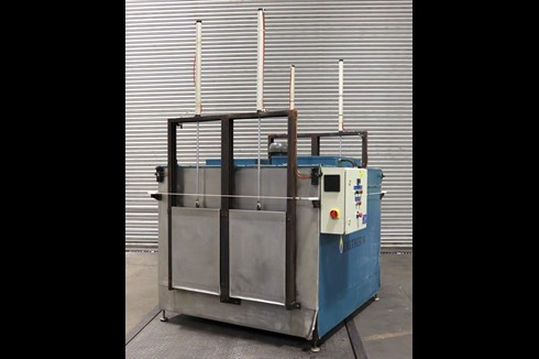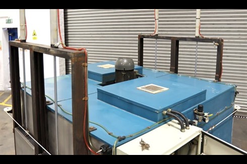 A Caltherm Well Dryer, featuring two through feed chambers with independently controllable entry and exit doors. Roller tracking enables the ease of rolling in and through the chambers of components or fixtures with a suitable flat base. Additional roller tracking is supplied to offload from the chambers.